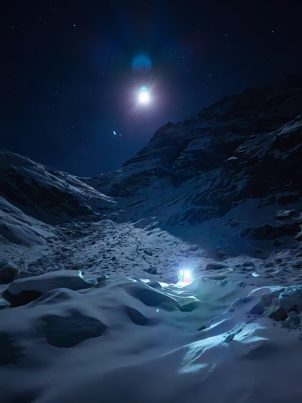 Two complete readings of the same site: one as a calm engineering lab, one as a snowy mountain base.